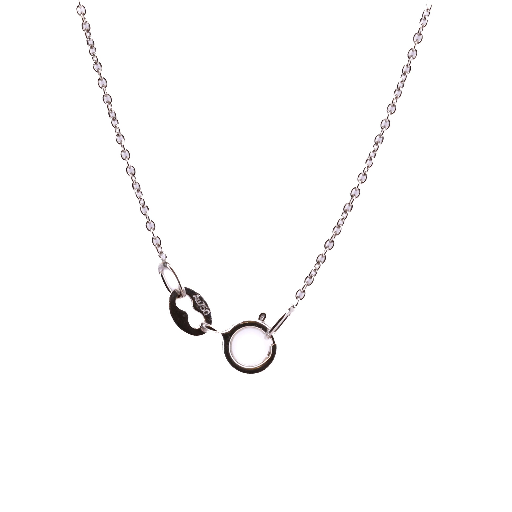 Tässä herkässä valkokultaketjussa on ripaus merensinistä, jota kehystää pienten timanttien tähdistö. Se on hillitty, mutta silti mahdoton olla huomaamatta – kuin salaisuus, joka kimaltelee vain niiden silmissä, jotka ovat tarpeeksi lähellä nähdäkseen. Täydellinen kappale kaikille, jotka arvostavat eleganssia ja väripilkkua.