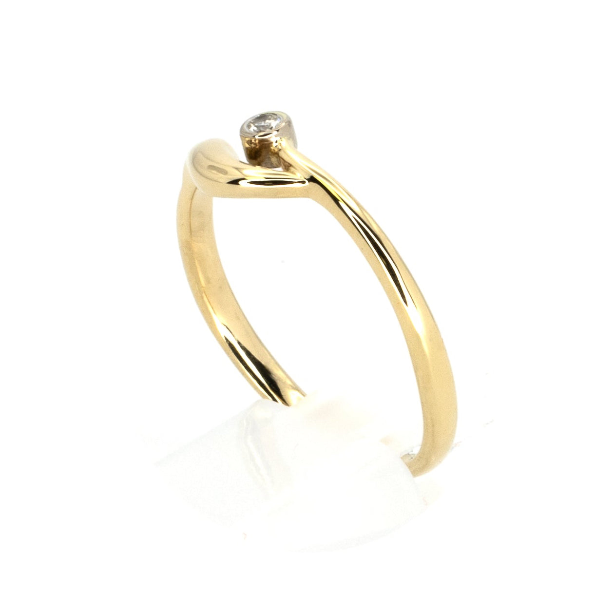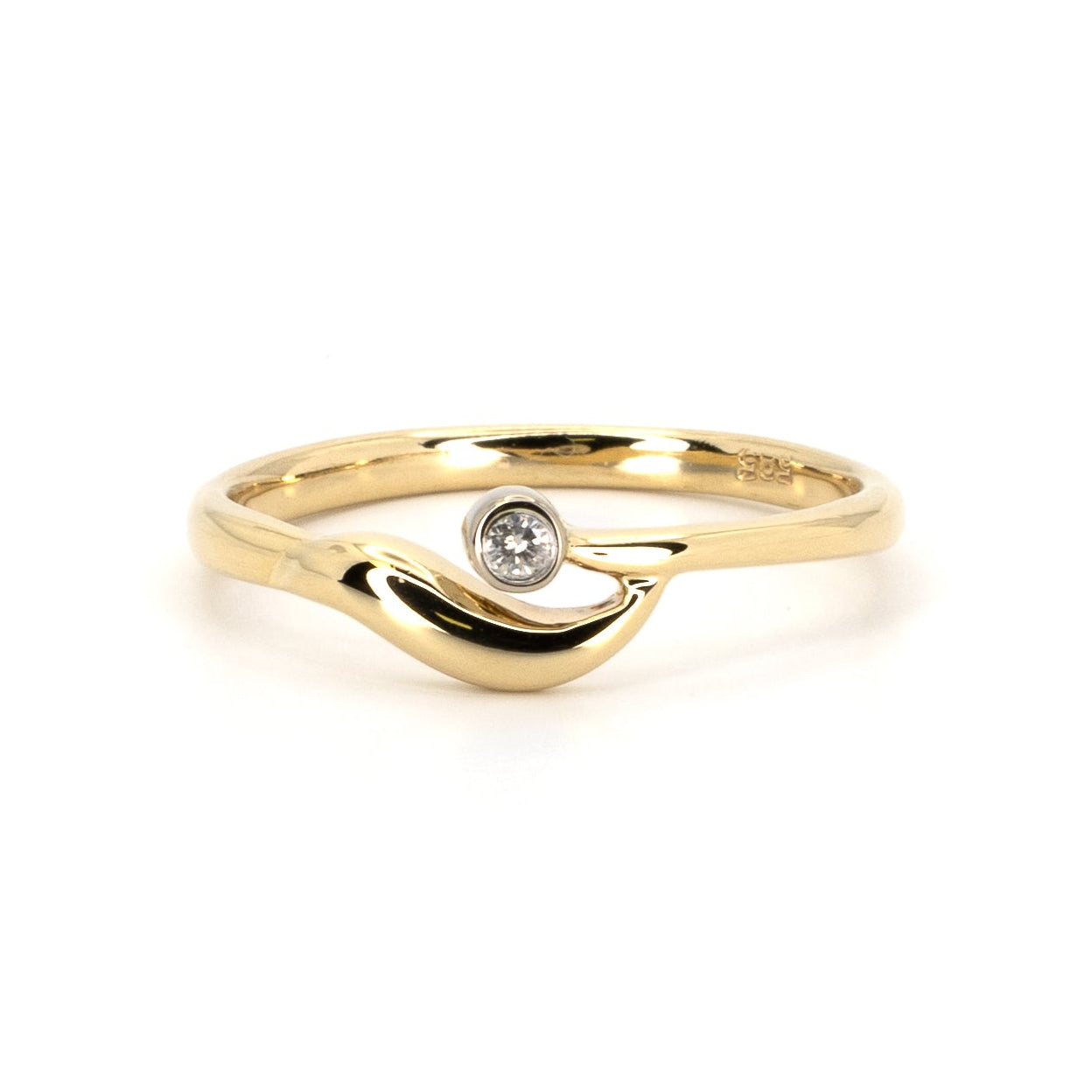 Enimmäkseen rauhallinen, hieman dramaattinen. Yksinkertainen kultainen sormus, joka yhtäkkiä aaltoile, ja jonka päällä on timantti, koska miksipä ei. Todiste siitä, että minimalistisissakin koruissa voi olla mielialan vaihteluita.