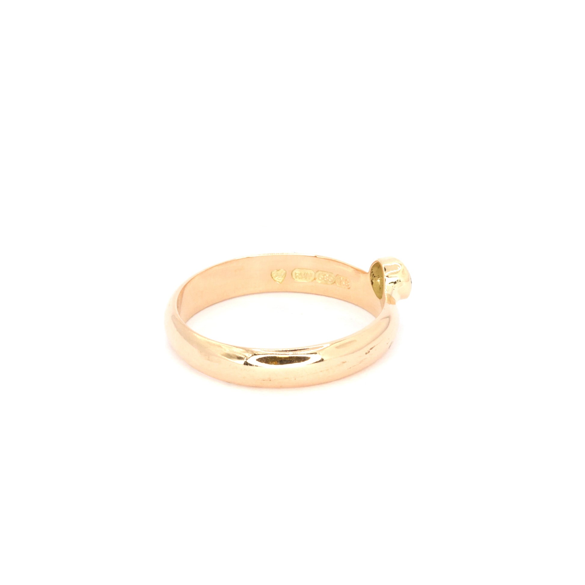 Yksinkertainen kultainen sormus, mutta hauskalla twistillä! Reunassa timantti iskee hienovaraisesti silmää.