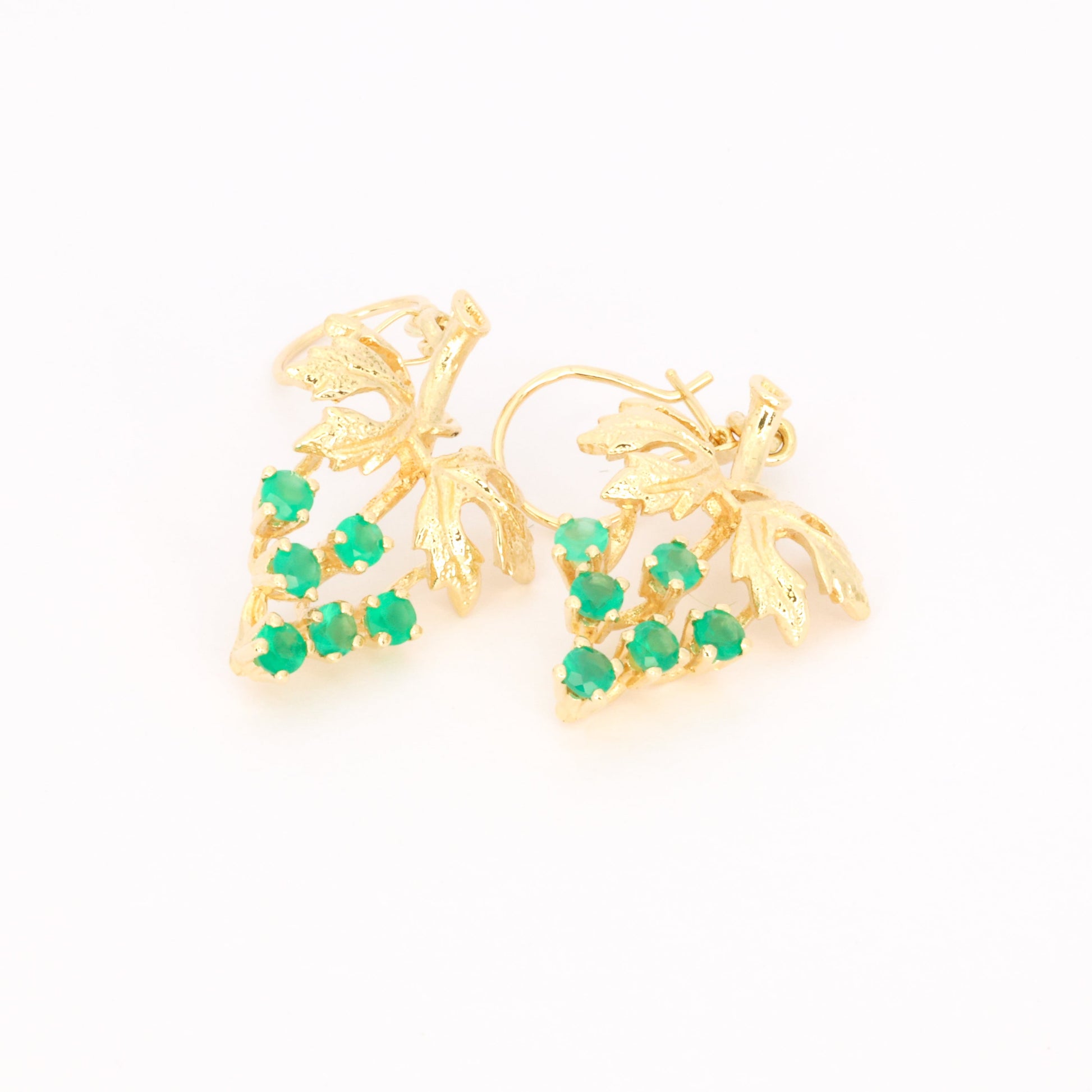 Nämä kultaiset pisarakorvakorut muuttavat korvanlohkosi miniatyyrimäiseksi viinitarhaksi. Ne ovat muodoltaan kuin mehukkaat viinirypäleet, joissa on hento köynnös ja lehdet, ja ne ovat hauskoja, oikukkaita ja täydellisen kypsiä kohteliaisuuksille.