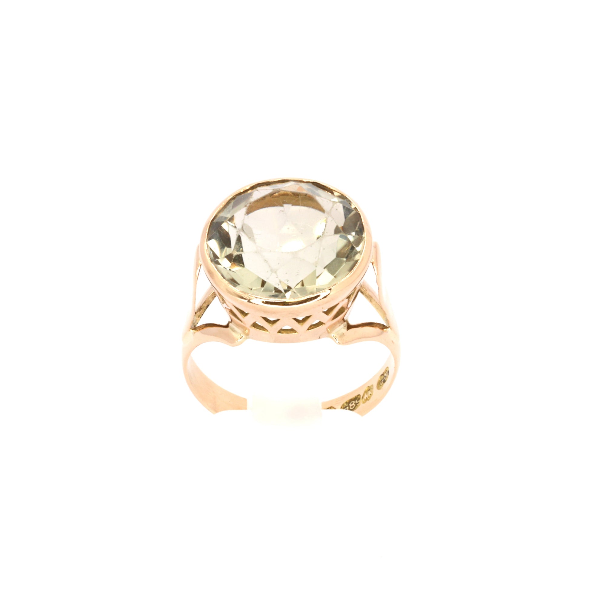 Keskellä on runsas vihreä ametisti eli prasioliitti – viileä, virkistävä ja kimalteleva kuin lasin lumoavin lime. Se on iso, rohkea ja suorastaan upea.