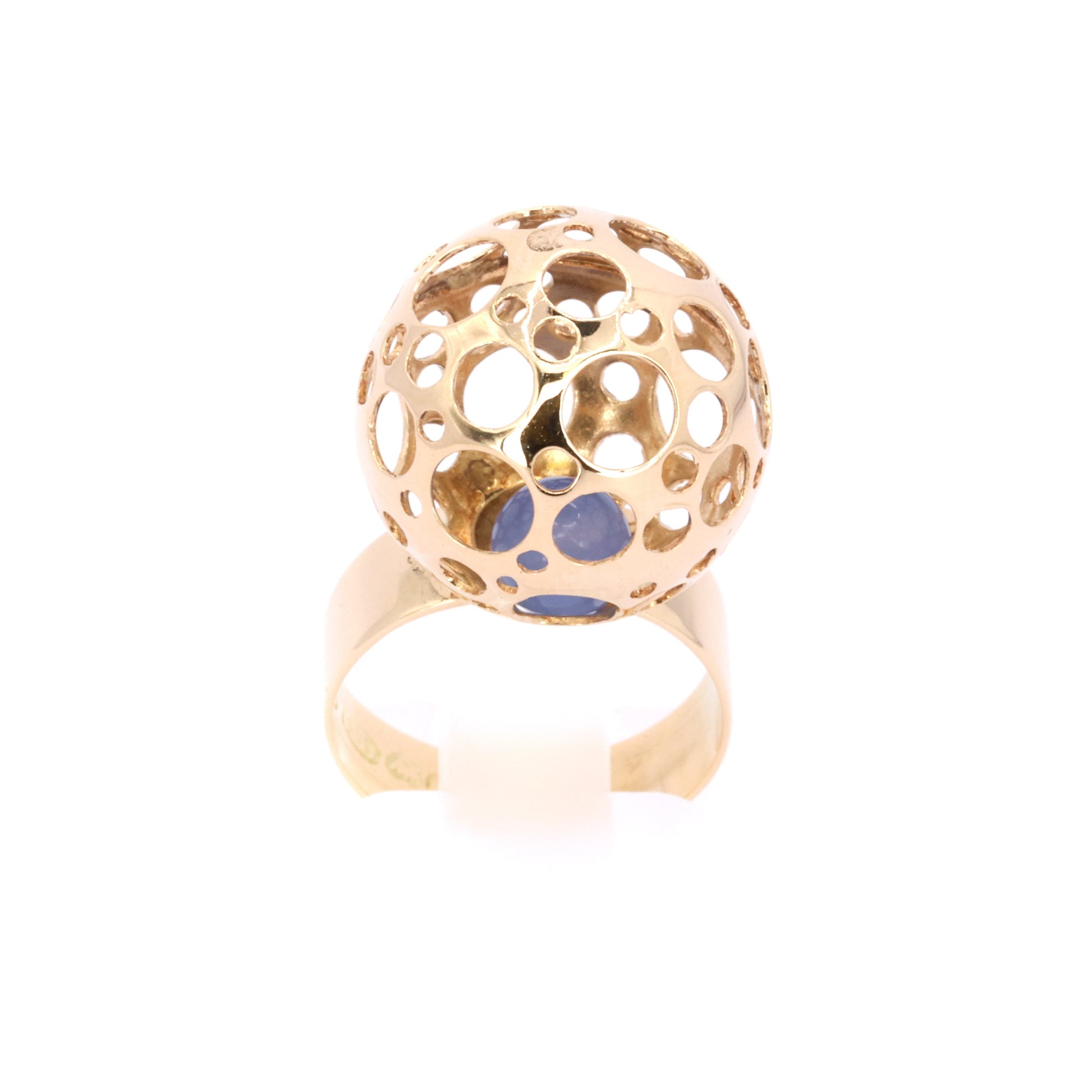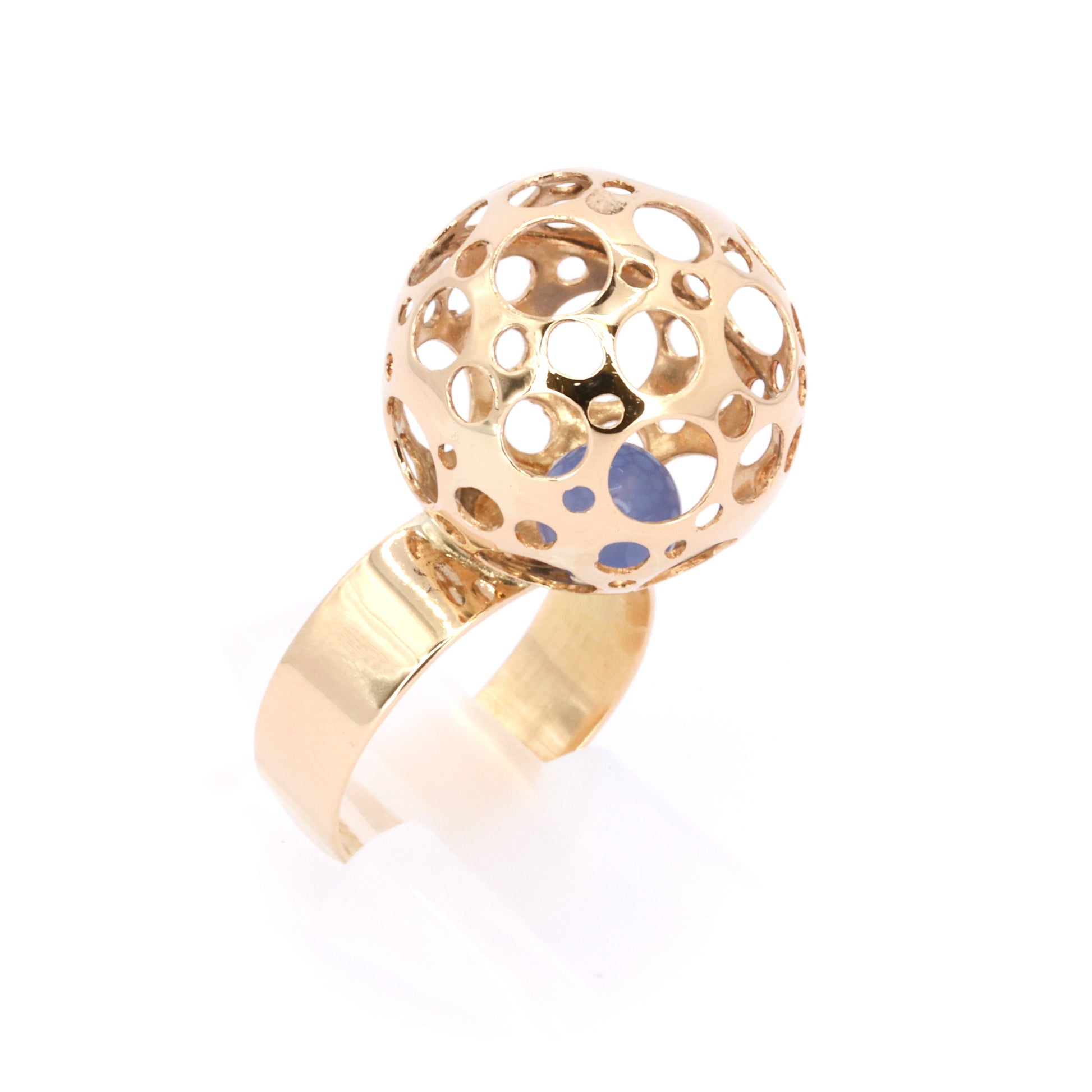 Liisa Vitalin Leppäkerttu-kultasormus näyttää ulkoapäin suloiselta ja herkältä, mutta yllätys – sen kultaisen kuoren sisällä kalisee pieni kalsedonihelmi. Osittain koru, osittain salainen maraca – se on leikkisä design-vivahde, joka saa sinut hymyilemään joka kerta, kun käytät sitä. Todiste siitä, että hienojen korujen ei tarvitse ottaa itseään liian vakavasti.