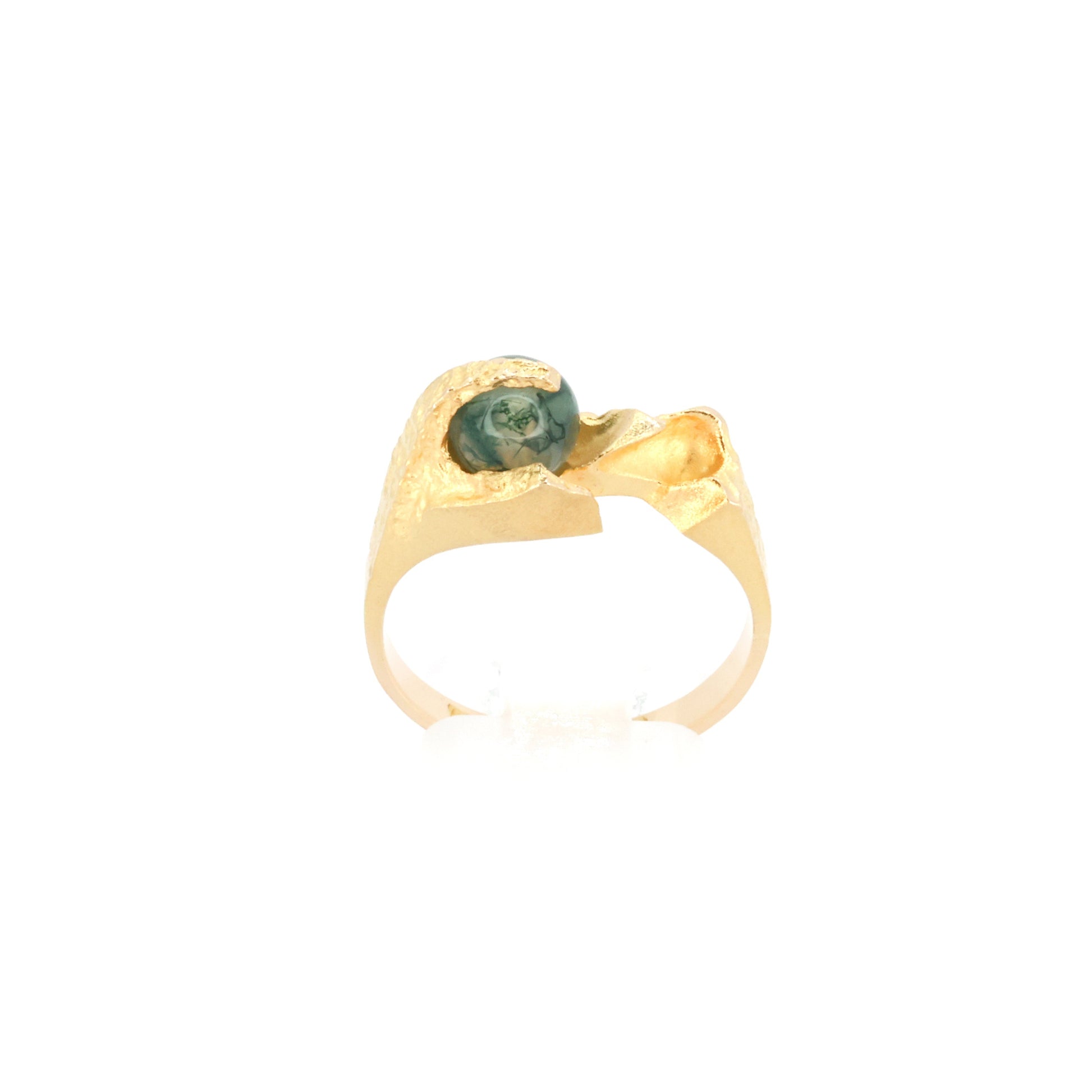 Esittelyssä Lapponian "Salattuakaatti": veistoksellinen sormus, joka saa sormesi näyttämään modernin taiteen näyttelyltä. 14 karaatin kullasta valmistettu sormus sisältää sammalakaattia orgaanisen, virtaviivaisen muotoilun sisällä. Se ei ole vain koru; se on keskustelun aloittaja, sormen kokoinen mestariteos ja mahdollisesti avantgardein esine, jota olet koskaan käyttänyt. Käytä sitä ja anna kätesi puhua puolestaan.