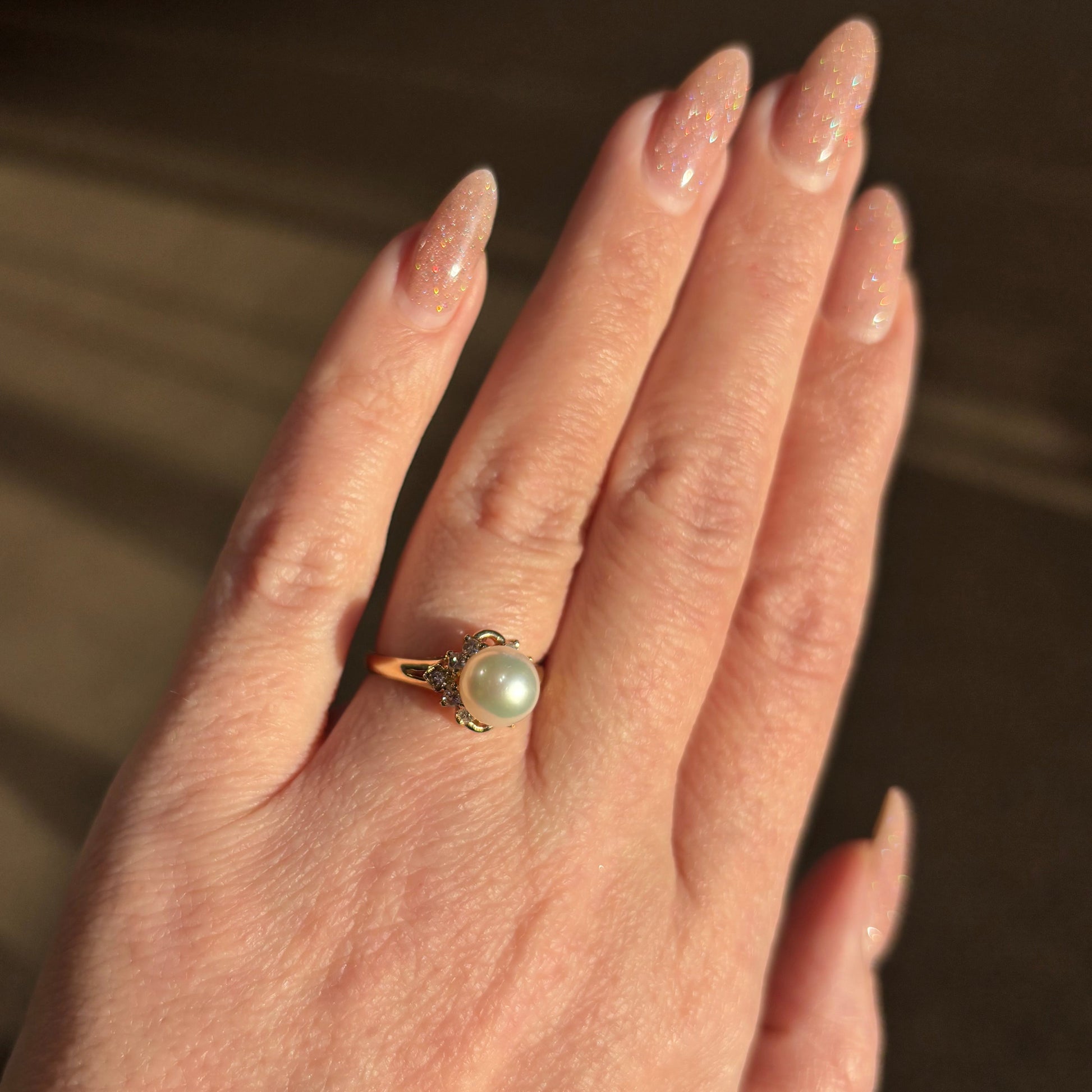 Hän on nainen... mutta hän puree. Hohtava helmi, täydellisesti kymmenen kimaltelevan kultaisen timantin keskellä, tämä sormus on klassisen eleganssin ja ripauksen itsevarmuutta edustava. Ajattele iltapäiväteetä – mutta samppanjan kera.