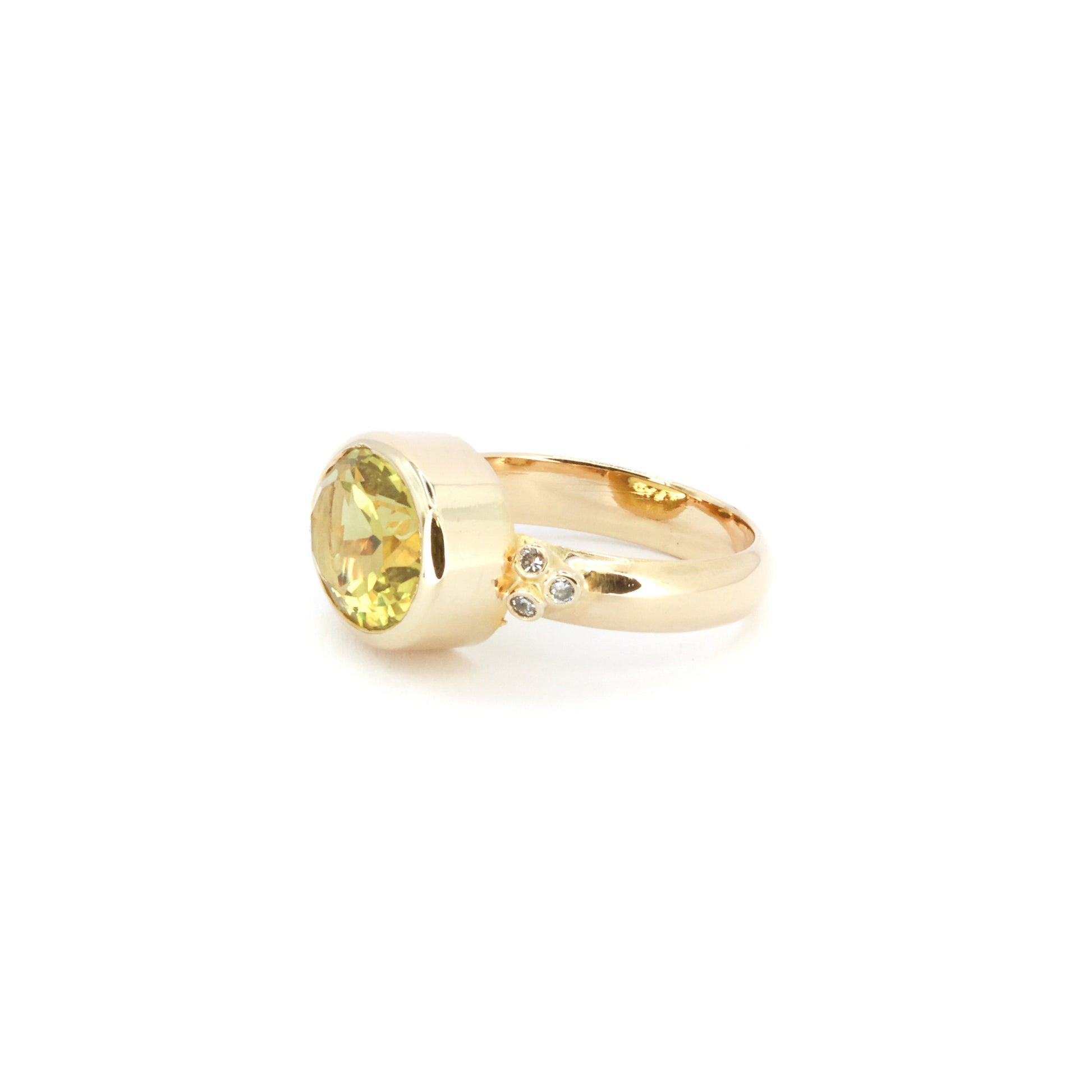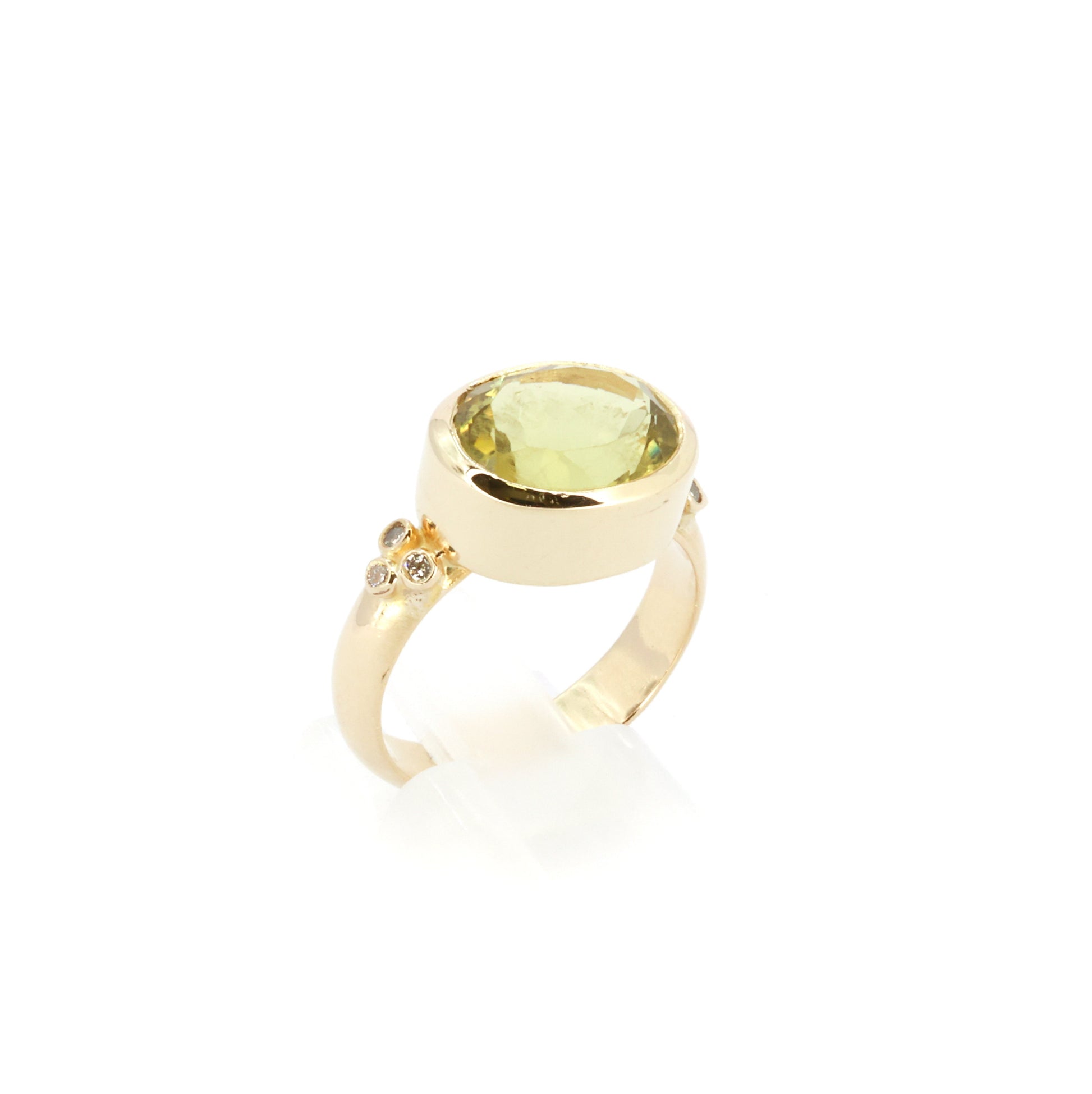Peridoottidraamaa, timanttivahvistus ja nolla anteeksipyyntöä. Tämä kultasormus on sormi, joka vastaa sanontaa: "Olen upea, siedä se."