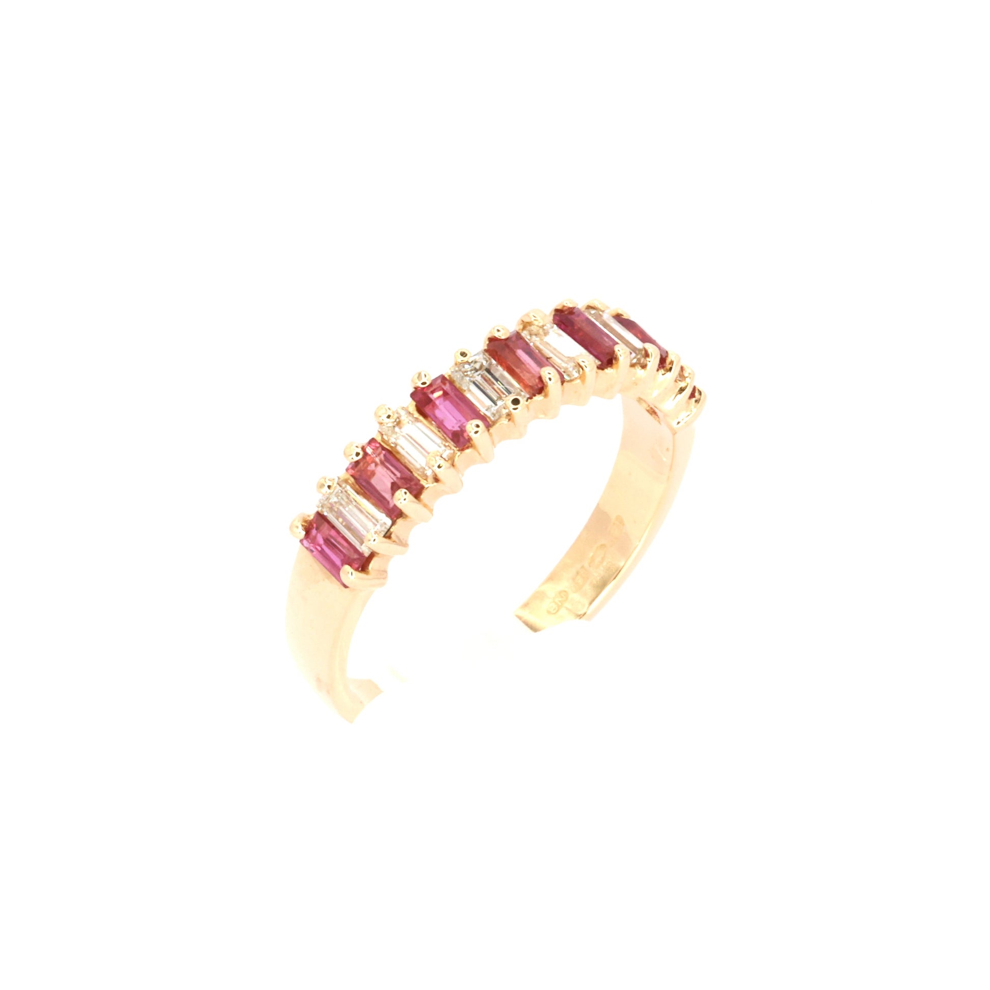 Moderni tulkinta ajattomasta eleganssista. Tässä sormuksessa on syvän lumoavia safiireja yhdistettynä kimalteleviin timanttipatonkeihin, jotka luovat värien ja valon rytmin, joka tanssii jokaisen liikkeen mukana. Täydellinen valinta näyttäväksi, koristeeksi tai hetken merkitsemiseksi, joka ansaitsee loistaa.