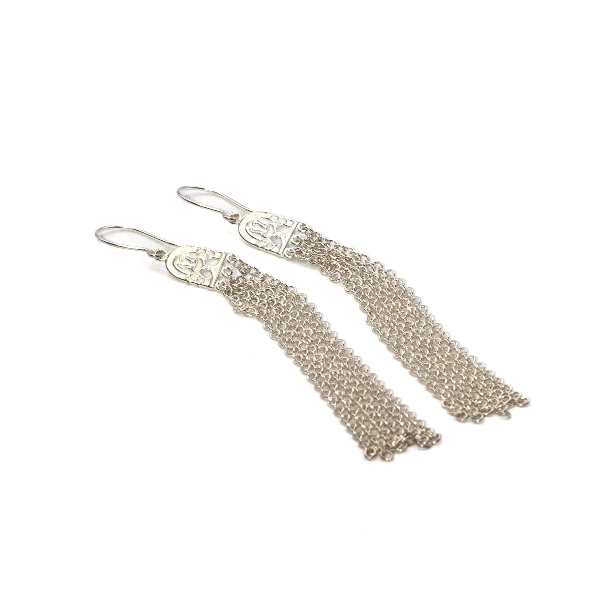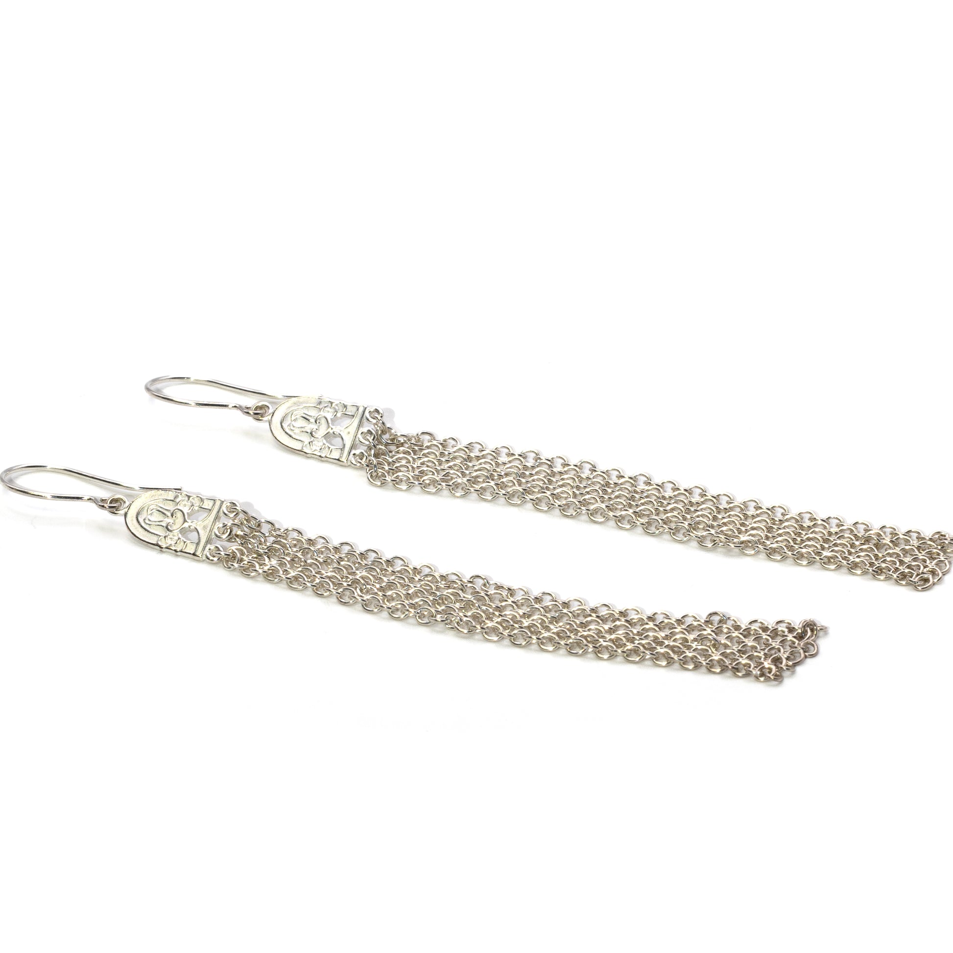 Astu tyyliin Kalevalan Paratiisi- korvakoruilla – yli 10 cm pitkillä hopeisilla korvikset, jotka ovat puhdasta eleganssia. Nämä korvakorut eivät vain roiku, ne toimivat täydellisesti . Täydelliset kaikille, jotka uskovat, että korujen tulisi flirttailla parrasvalojen kanssa (ja ehkä varastaa sen).