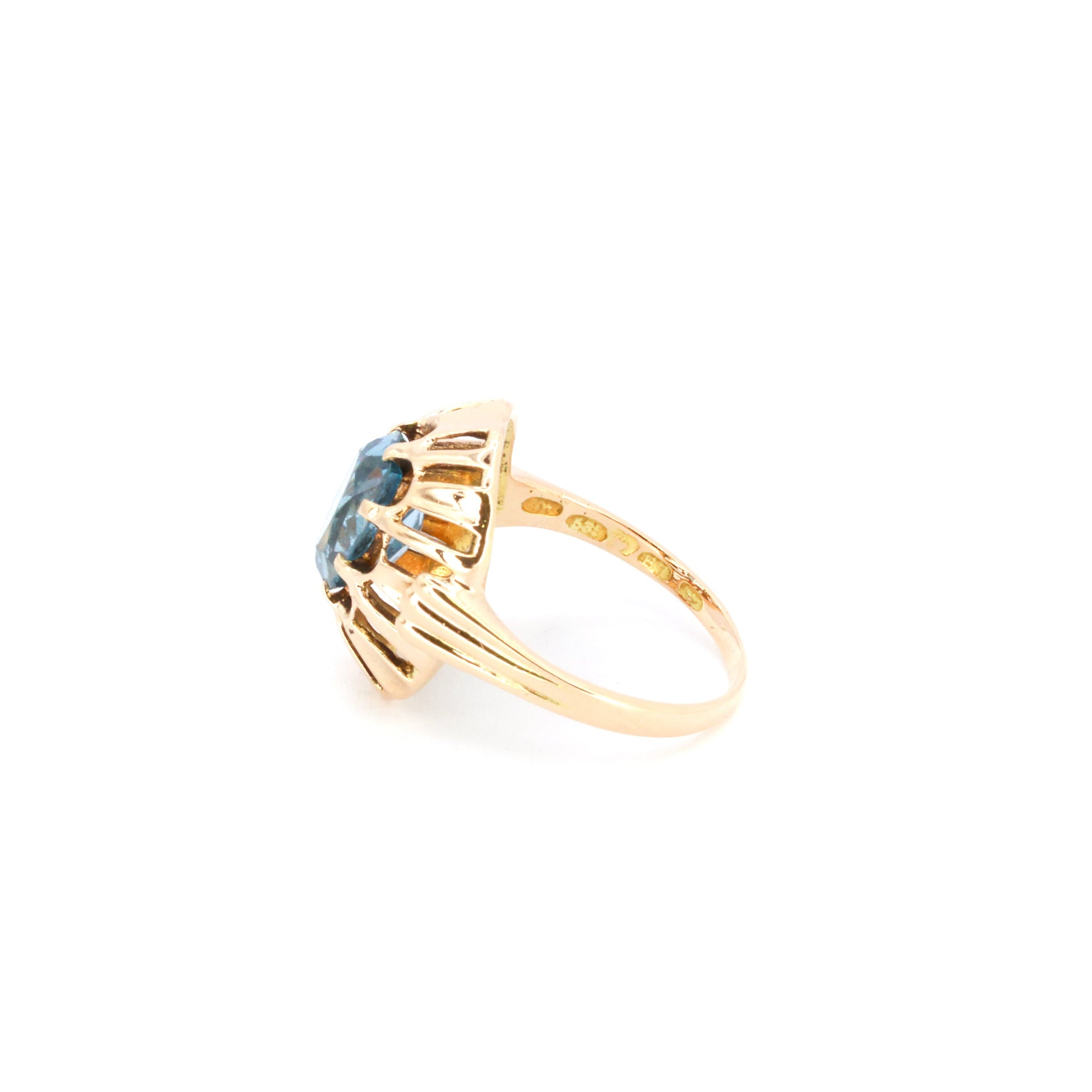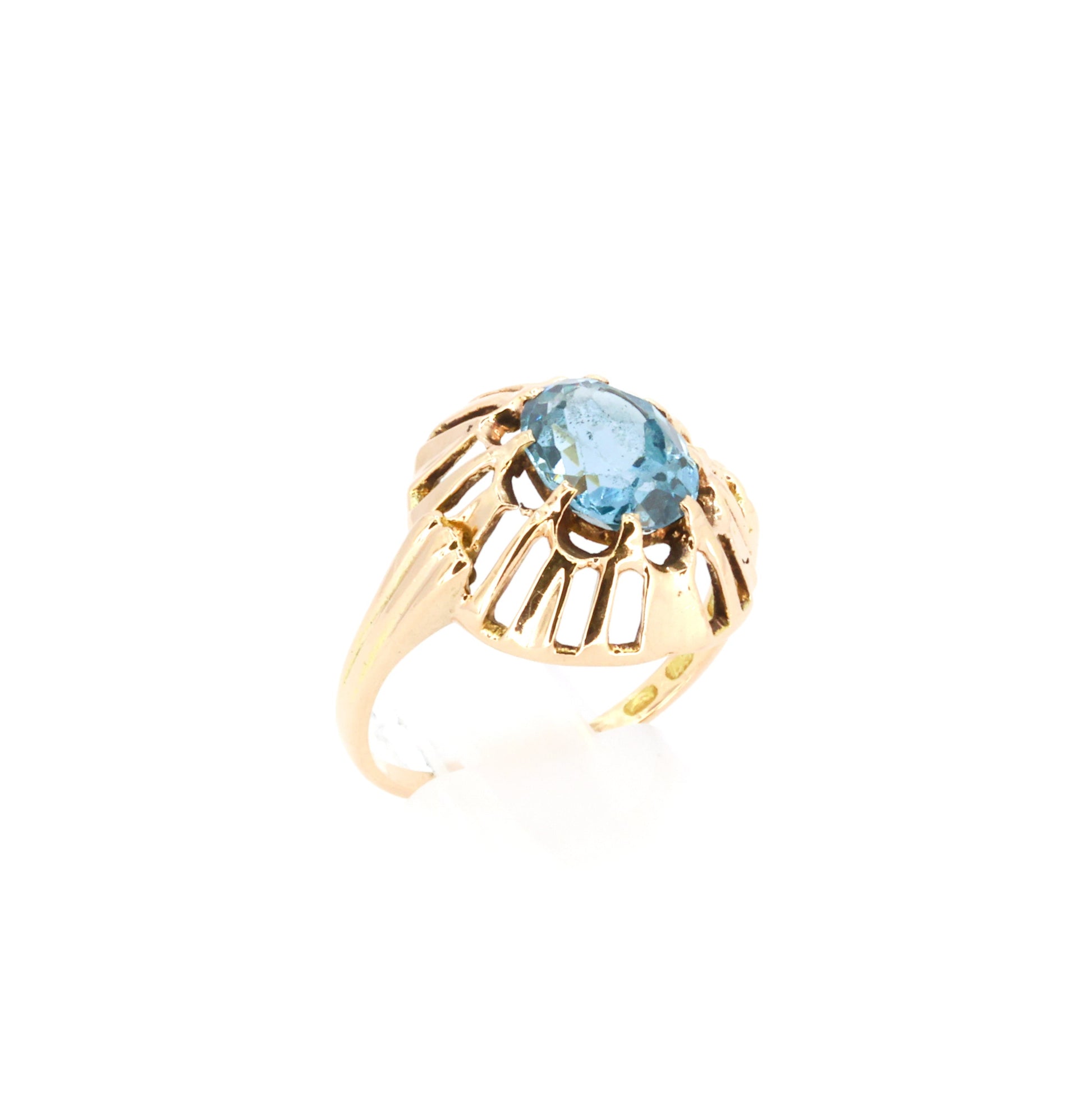 Taivaansininen vintage cocktail-kultasormus