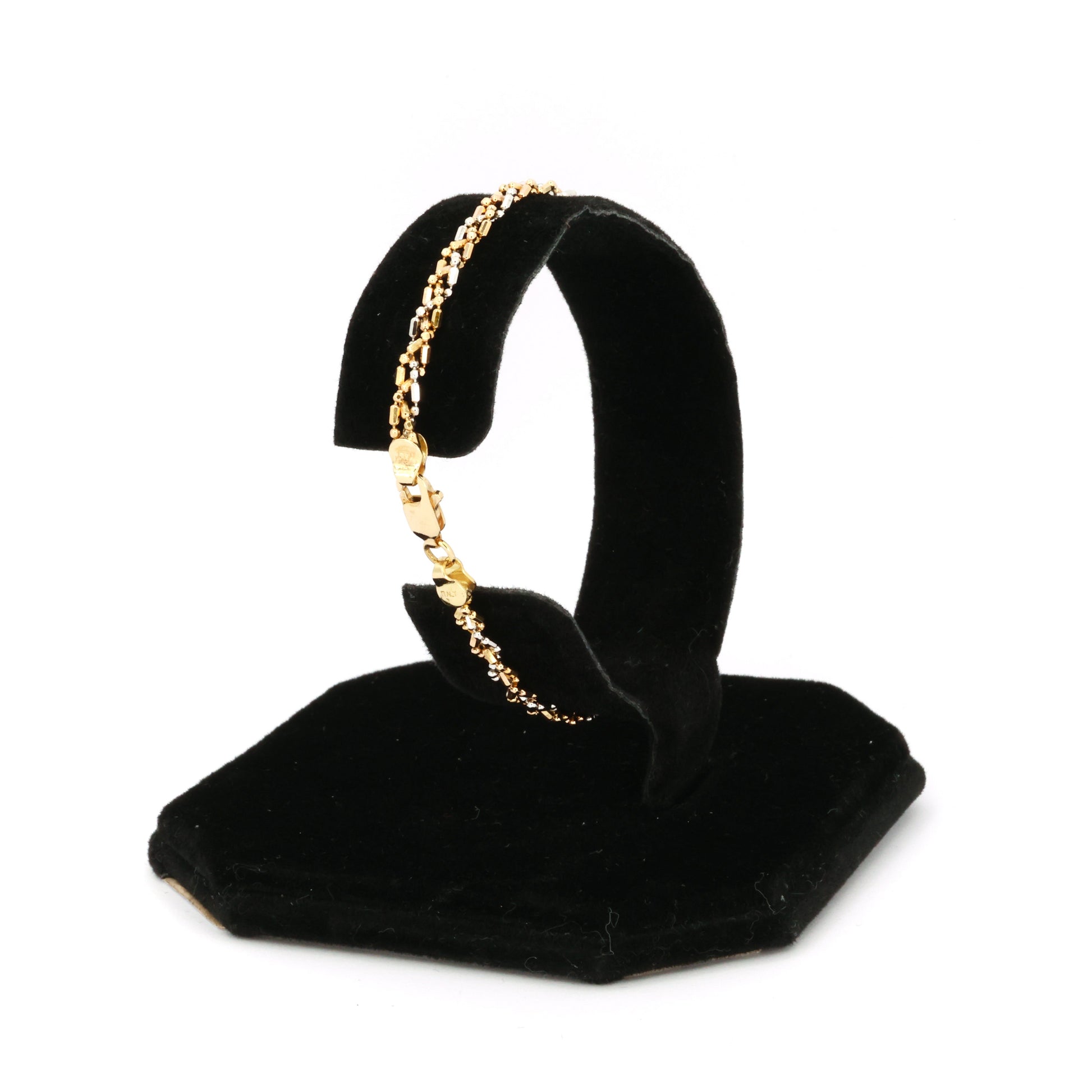Tämä ei ole vain rannekoru – se on kultainen keskustelunavaaja. Sen monimutkaiset, kierretyt lenkit heijastavat valoa joka kulmasta, joten se on pohjimmiltaan diskopallo ranteeseesi (ilman 70-luvun soundtrackia).