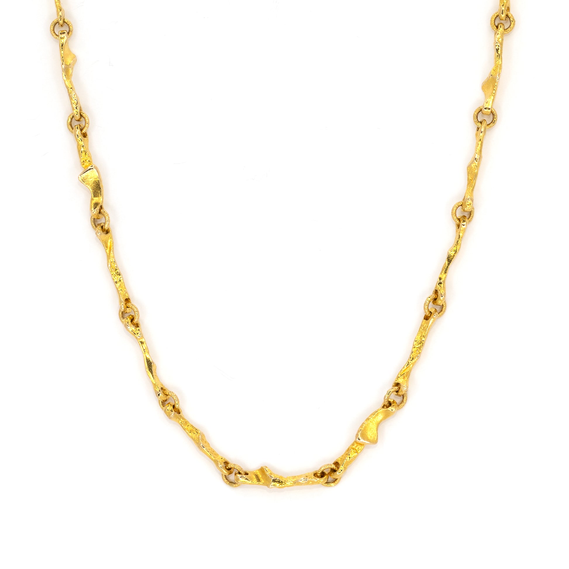 This iconic Lapponia 18K gold bar chain has that bold, sculptural look that is instantly recognizable. Chunky, modern, and full of character, it’s the kind of necklace that feels like wearable art without taking itself too seriously.