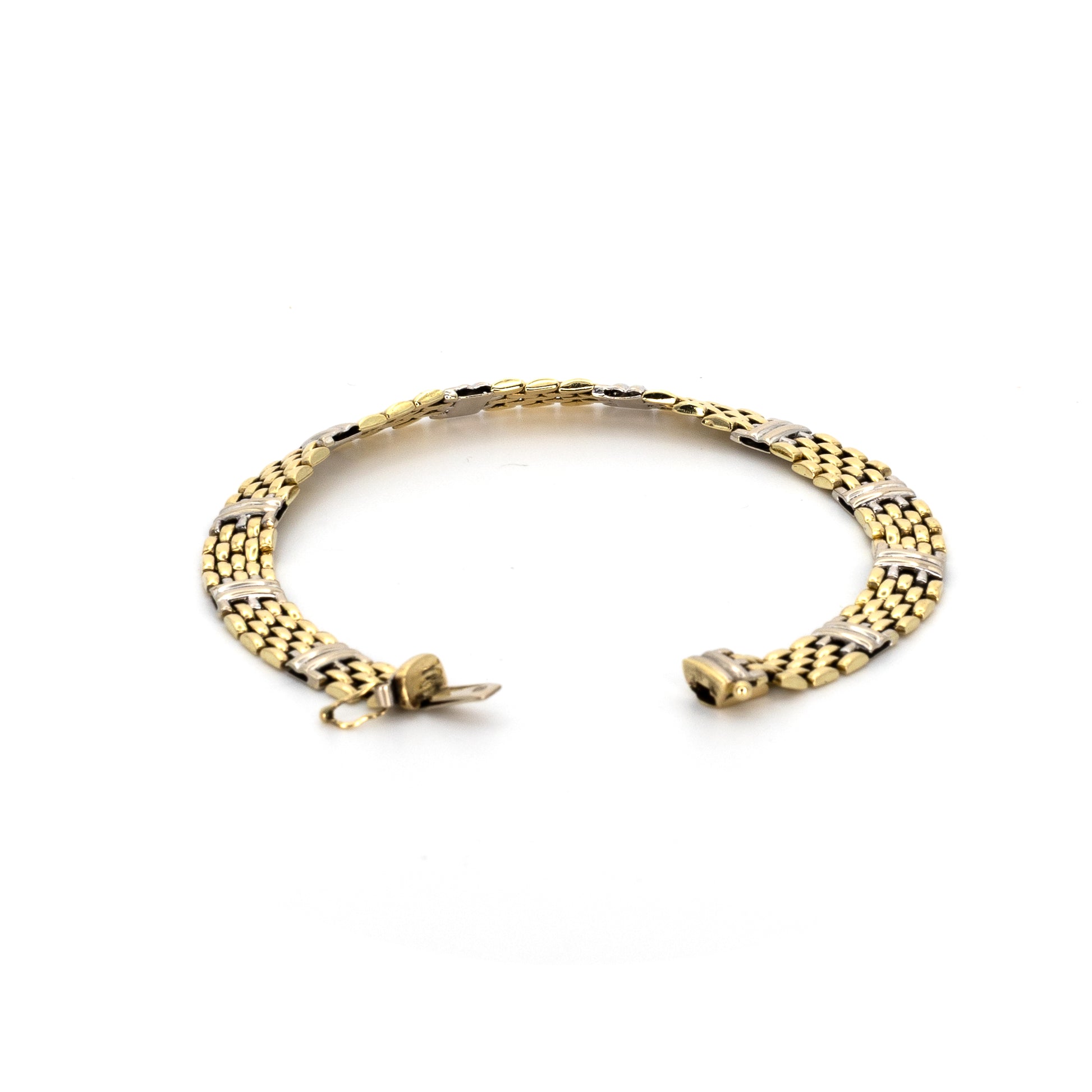 Why settle for plain when you can have double the dazzle? This bracelet rocks both yellow and white gold in a woven design so smooth, it looks like gold decided to braid its own hair for a party.