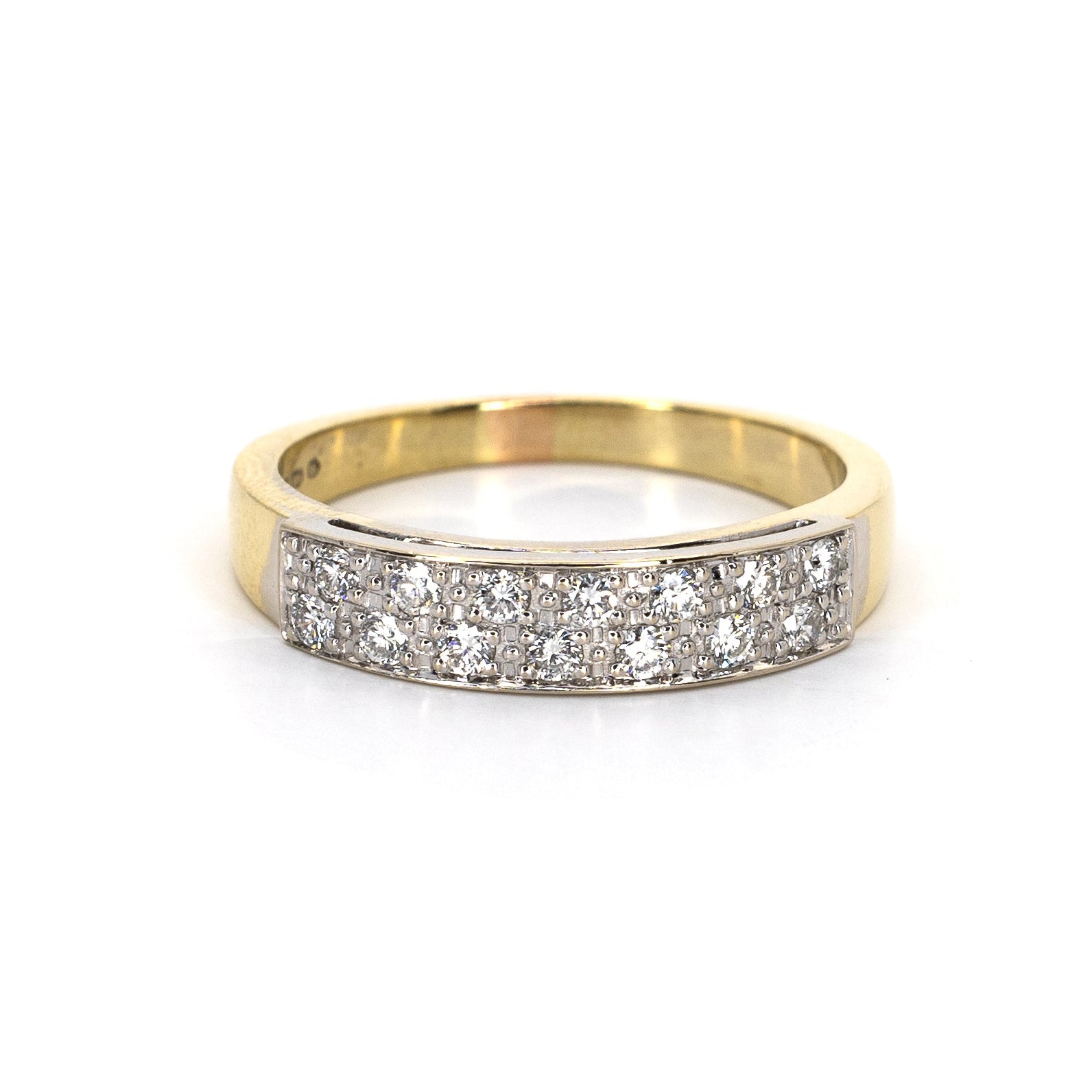This isn’t just a ring—it’s a finger monument. 14 diamonds, two rows, gold base, and enough sass to make neighboring fingers feel underdressed.