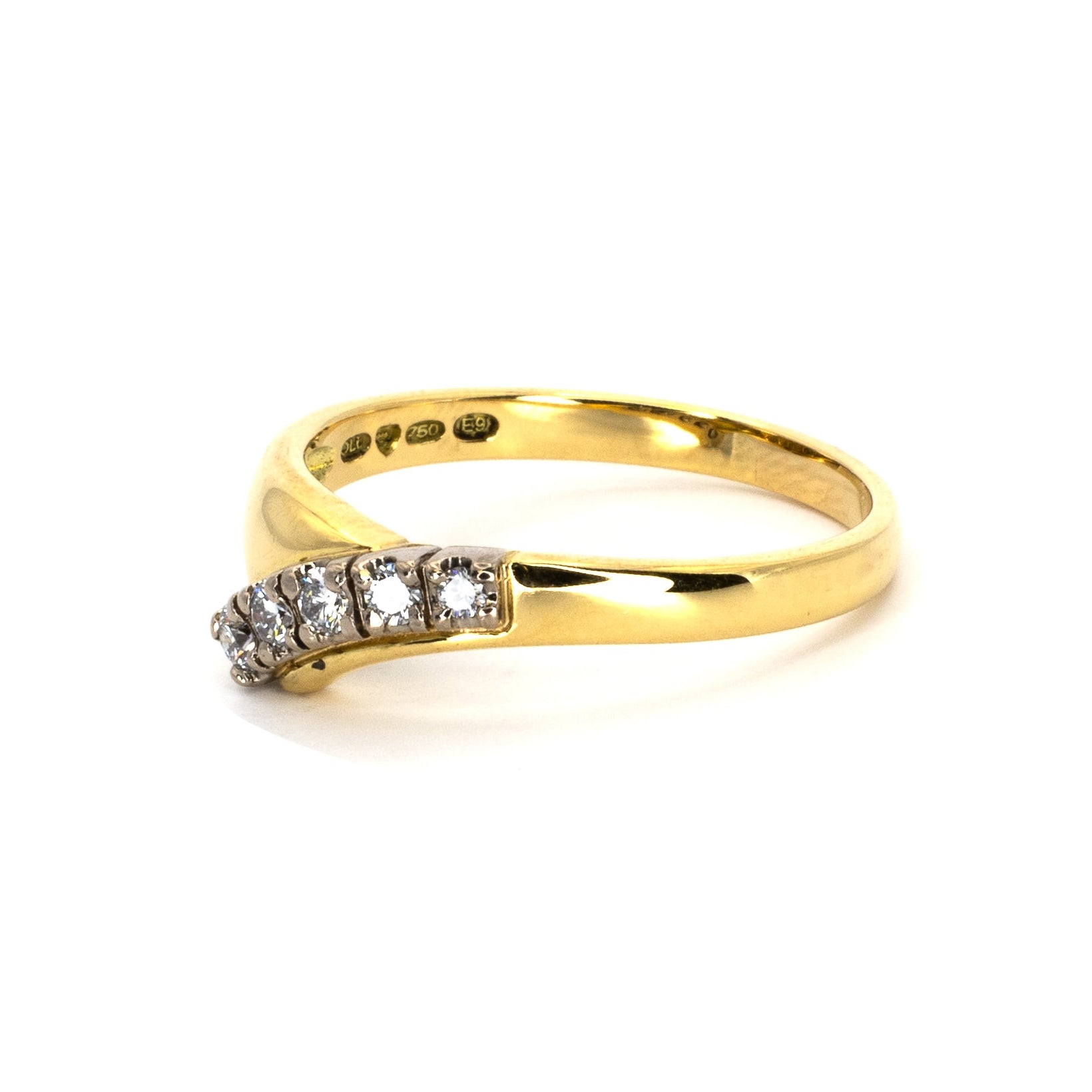 A clever twist on classic sparkle. This V-shaped ring features five diamonds that cascade from bold to delicate, drawing the eye along a perfect line of brilliance. Sleek, modern, and effortlessly chic—because why settle for ordinary when your sparkle can have a sense of direction?