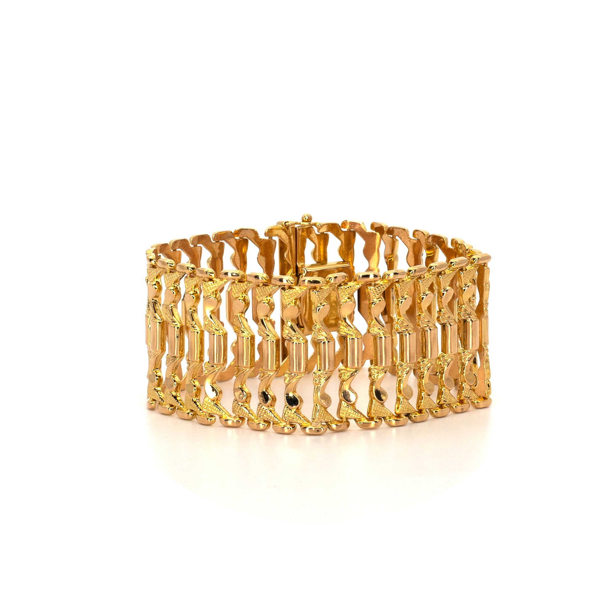 Meet the bracelet that doesn’t just sit there—it rolls over your style competition. Over 3 cm of solid gold, chunky and bold, with a design that whispers ‘tank wheels’ and screams ‘unstoppable.’ Not for the faint-hearted… or the wrist-lightweights.