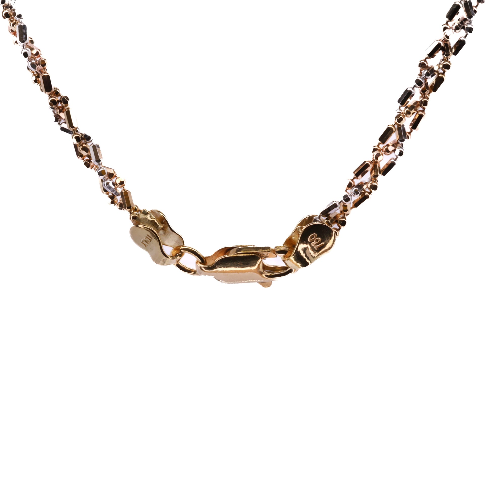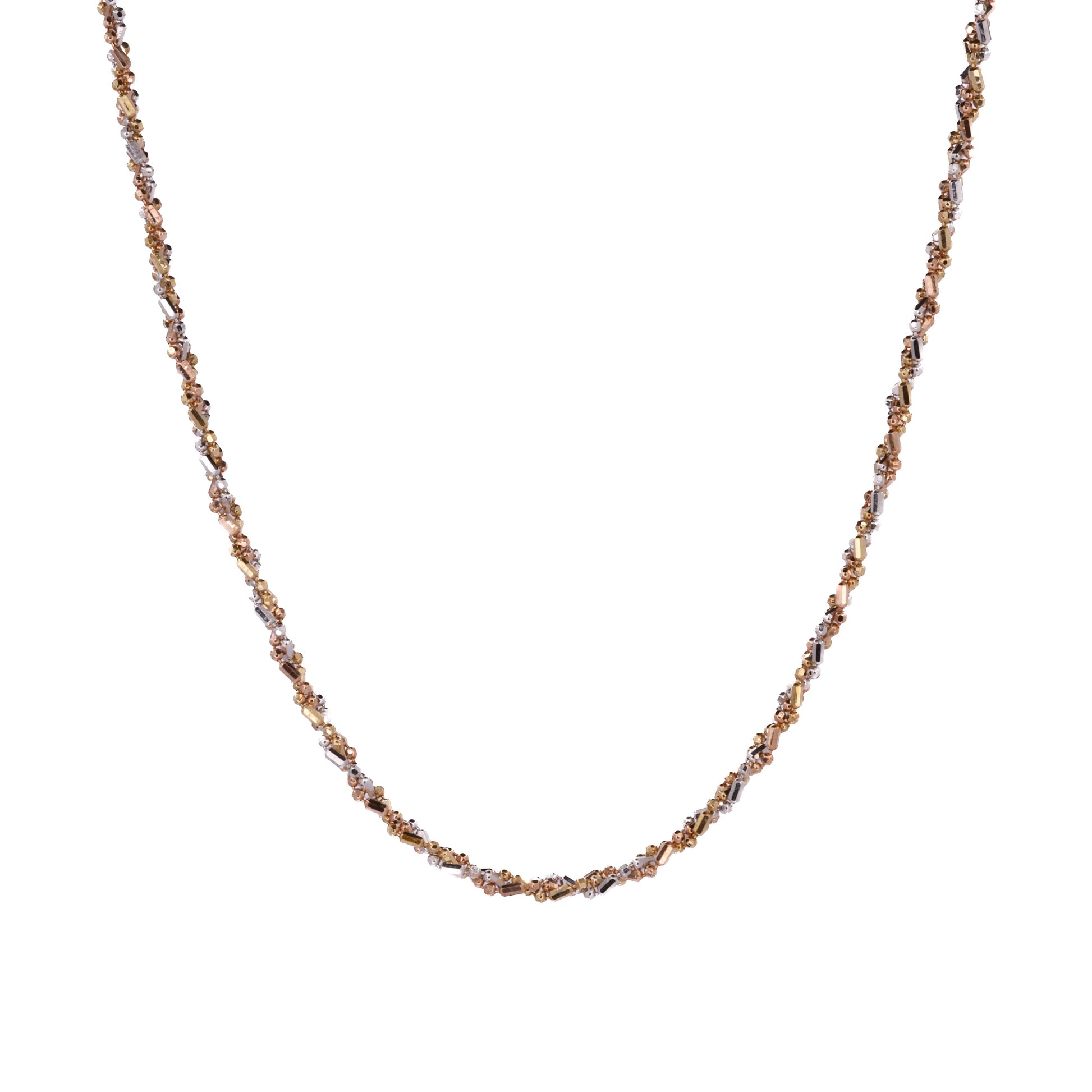 This gold necklace takes the classic chain and gives it a sparkling twist — literally. Intricately woven links catch the light from every angle, making it part jewelry, part spotlight.