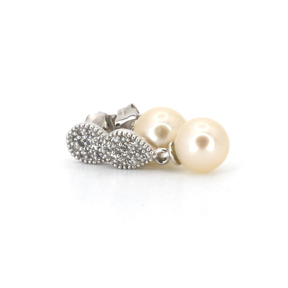White Gold & Diamond Drop Pearl Earrings